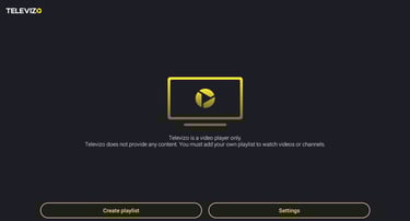 Televizo Player is a media player, which means it doesn't come with any pre-installed channels or content. To watch anything, you need to add your own playlist. Here is a general guide on how to set up a playlist in Televizo Player: Important Note: You must obtain a playlist from an IPTV service pr