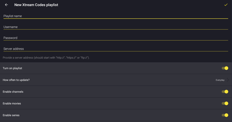 4. Once you have entered the required information, confirm the details (usually by clicking a checkmark or "Add Playlist").